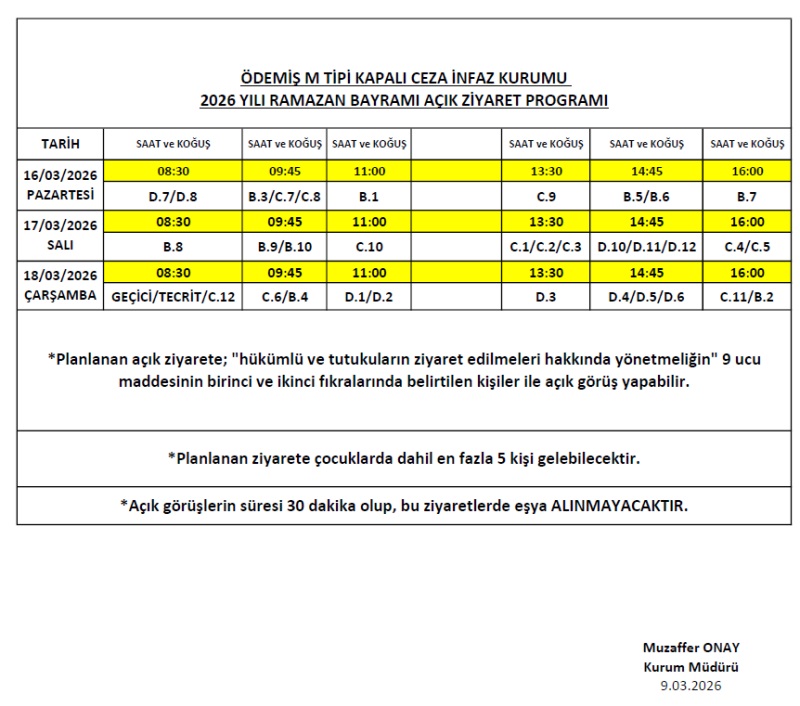 2026 YILI Kapalı Ceza İnfaz Kurumu RAMAZAN BAYRAMI AÇIK GÖRÜŞÜ HAKKINDA DUYURUDUR